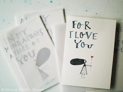 watercolour on a very nice (folded) paper, carefully wrapped in parchment, with its envelope.the original pieces in my online shop,and the printed greeting cards in petiteposte!