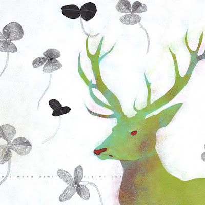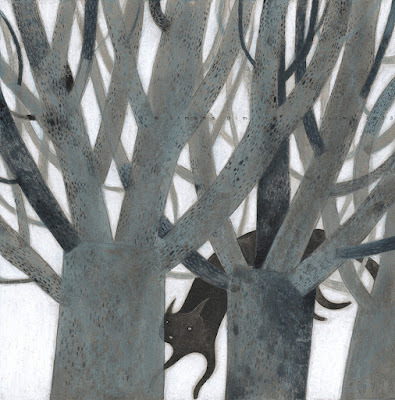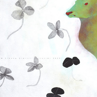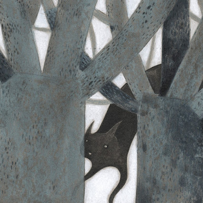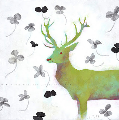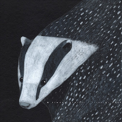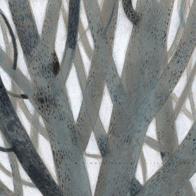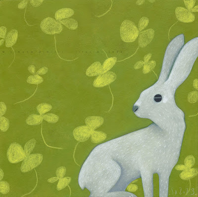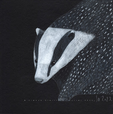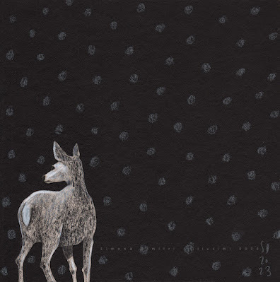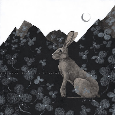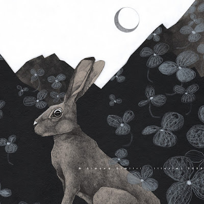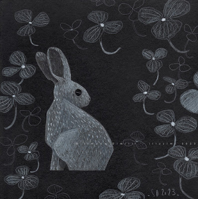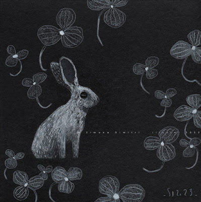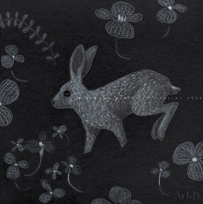 grey hare & the grey flowers / at nightmixed media on grey cardboardoriginal artwork 40x40 cm