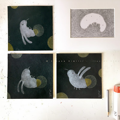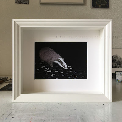 islands ready for the summer exhibitionwhile the shy badger prefer to stay with mehe'll be available in my online shop only :)) the little night bug was also aroundand excited to fit into a perfect frame