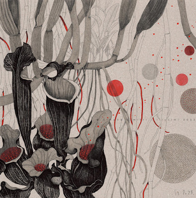 the flowers and the scent, their way, feeling, sharing, to tell.. [ original artwork mixed media on grey cardboard 30x30cm ]