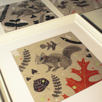 squirrels and a dormouse on grey carboardin their magic world, invisible to our eyes