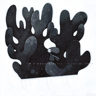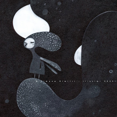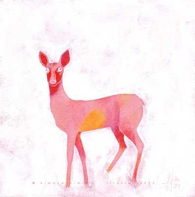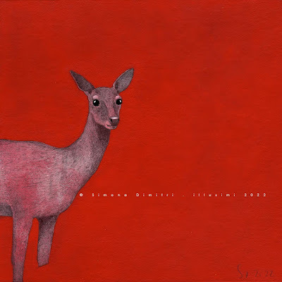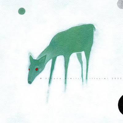 black eyes / white dots kind of / red flash of light dreamy-deer