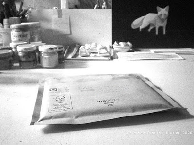 ...under the careful look of the fox, and his approval,the postcards are ready for the travel. A long wayover the vastness of the ocean toward Unite States!