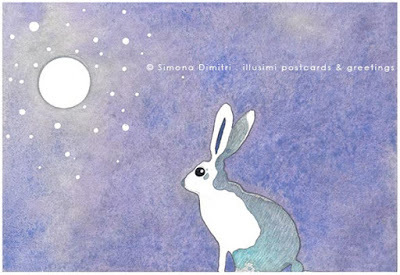 "rabbit & the moon" A6 300g cotton paperShiro Echo Favini & recycled paper envelope: shipping worldwide :