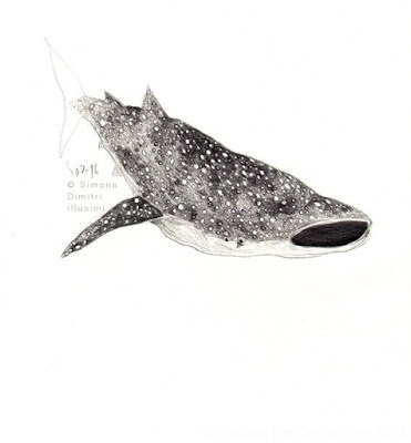 a pencil drawing from a few years ago, this wonderful creatureroaming the sea with a starry sky on his body. It comesto my mind now again as I read about another incredible shark,the Greenland shark, and his astonishing life span. All these lives,all these difference, the most precious things on the world...
