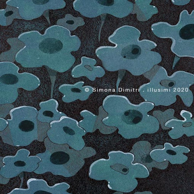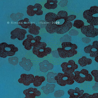 meditative work, slowly building the night, line afterline, into unavoidable, inscrutable forests of thoughts mixed media on heavy cardboard / 40x40 cm