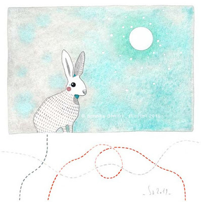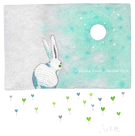 the rabbit & the moon (III & V)mixed media on cotton paper / 15x15 cm