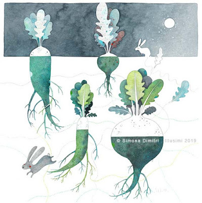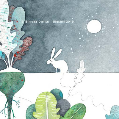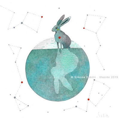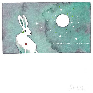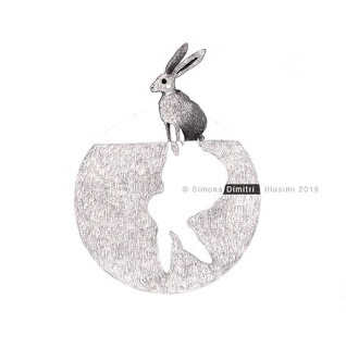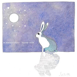 the rabbit & the moon I & IImixed media on cotton paper ( I in progress )
