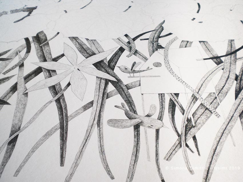 our hidden place / down heremixed media on cotton paper, 40x40 cm