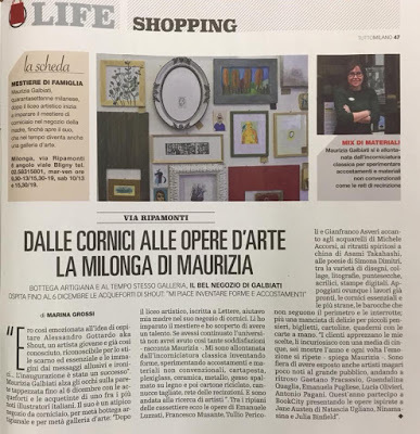 "'Mi sono allontanata dall'incorniciatura classica inventando forme, sperimentando accostamenti e materiali non convenzionali, cartapesta, plexiglass, ceramica, metallo, gesso spalmato su legno e poi cartone riciclato, cannucce tagliate, rete delle recinzioni. E sono andata alla ricerca di artisti ". Tra i ripiani delle cassettiere ecco le opere di Emanuele Luzzati, Francesco Musante, Tullio Pericoli e Gianfranco Asveri accanto agli acquerelli di Michele Accorsi, ai ritratti spiritosi a china di Asami Takahashi, alle poesie di Simona Dimitri, tra la varietà di disegni, collage, litografie, puntesecche, acrilici, stampe digitali."