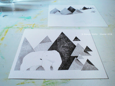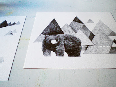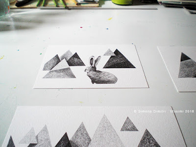 mixed media on cotton paper 15x15 cm, with detailsbelow, the work in progress on my table...