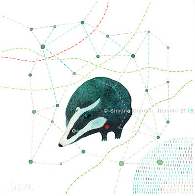 and the invisible trails...mixed media on cotton paper, 15x15 cm