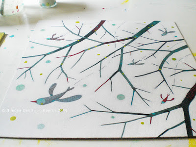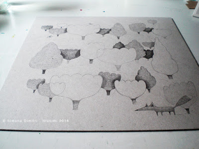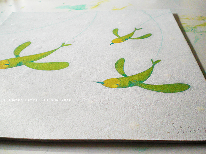 mixed media on grey cardboard, 30x21 cm / work in progress