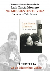 El viernes 28 de diciembre de 2012, a las 20:30, Luis García Montero presentará su última novela No me cuentes tu vida en La Tertulia, en calle López Mezquita de Granada. Introducido por Tato Rebora.