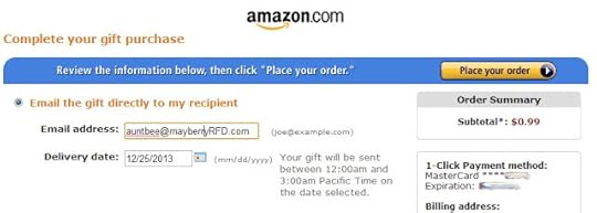 Click on that and you'll see where you can enter an email address and A CALENDAR DATE for DELIVERY later!