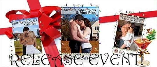 and a martini glass ornament.Second I'm going to give stuff away. YAY!!! You'll notice the prizes are all themed to go along with my title. And each prize pack will come with the Martinis, Manicures & Mud Pie e-book.