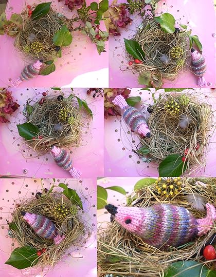 Front Legs onto 2 mm (US size 0) dpns. RS facing, rejoin pink yarn, K5 work