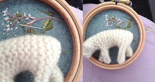 - until now, thanks to fabulous embroidery artists like Sarah Benning I feel inspired to go slow and have another go - combining it with knitting of course! More pics here