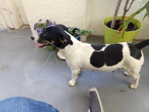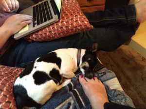 (Hit me up if you’re interested! She’s house-trained and a total love. Her main problem that we’ve seen is that she IS a total love. She wants to be a purse dog and touching you at all times. This is a dog for a person who wants to be adored ALL THE TIME without a break. She has separation anxiety which will ease with time and security, but she has a loud whine (no barks have been heard) so she’d make a better house dog than an apartment one. She got along fine with my Dozy. She doesn’t like to cross streets (for obvious reasons, I think). Pass it on!)