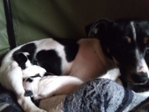 She was right. She’s usually right. Sure enough, Little Molly popped out two puppers. The first took a while and was stressful for all of us, but she did everything right and little Athol was born and cleaned and (s)he suckled right away.