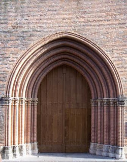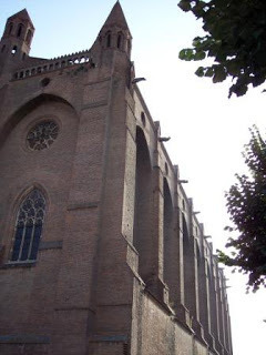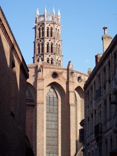 After lunch and a short rest, I hit the road again, this time aiming for the Augustins museum, specifically to see the Toulouse Lautrec paintings they have. But when I got there, a sign was posted that said because of the heat, the rooms with the paintings were closed this afternoon. I don't blame them, of course, but it was a disappointment. I'll try again in the morning. So then, melting a little myself at this point, I wandered around some more. I found the Cathedral St. Etienne, which is another ancient church, this one built in a hodge podge of styles.