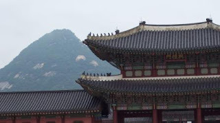 I really wanted to go to the Folk Museum, which is inside the grounds of the Gyeongbukgoong, the main palace of Korea's Jeoson dynasty. It's a short walk from the hotel, and the visit brought back many memories. On my very first day in Korea in January 1976, this is where I went. We had just arrived and were staying in a cheap inn not far away, and it was bitter cold. We were due to travel down country to our training site later in the day, but first we wanted to do some exploring of our new home, so several of us found the palace. Now, though, the grounds are even bigger than they were then because the government has continued to work on restoration. It's a little bit redundant, after a while -- the very many buildings begin to look the same -- but still it's a great place to visit. And if it weren't so humid, it would be a pleasant place to wander around.