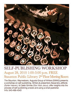 Earlier this year I started an organization called SWAG: the Staunton-Waynesboro-Augusta Group of Writers, a sub-group of the Blue Ridge Chapter of the Virginia Writers' Club. My primary purpose in forming the group was to provide a vehicle for the reading series I envisioned, and the first reading was held on Bloomsday, June 16. Our next reading will be September 29 and will feature the poet Todd Davis and the local nature essayist Janet Lembke.