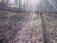 Wednesday was pretty much the same. I worked. I did laundry. I took a walk in the woods. (Regarding the pictures: on the left is a picture called the Loch VCCA Otter--I saw a trio of otters playing in the lake on campus; on the right is Roadblock!--a large tree had fallen across the walking trail since I was here last year.) And now I'm working again.