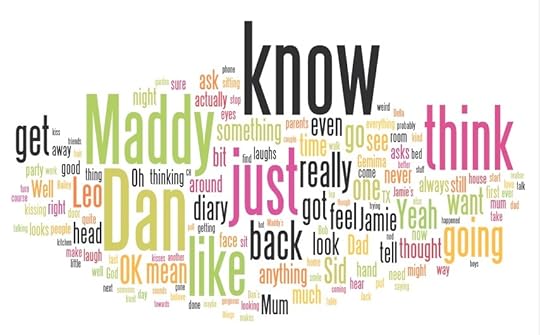 I made the above cloud at Wordle.net by pasting in the entire text of Della Says: OMG! The first thing I noticed is that 'know' is actually bigger than the character names, which can't be right. Although I was pleased that 'Maddy' is almost as big as 'Dan'. Shows that Della's best friend is as important as her boyfriend. I also laughed at that four letter word (no, not one of those) in pink, smack in the middle. I've obviously got the same problem as fellow YA author Cat Clarke.