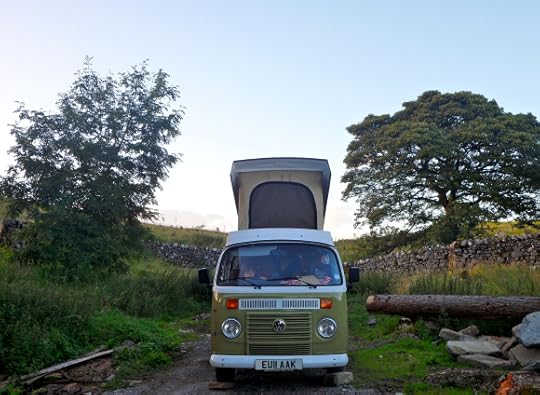We moseyed over to Malham and after a hairy drive up some steep and windy hills, found the campsite. It was a mudbath. The staff there said they’d find some hard-standing for us to park on and, once the staff had left for the day, we settled into a surprisingly cosy parking area.