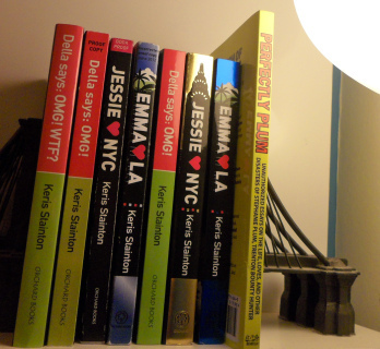 (That’s the Della original title cover, three proofs, three books and then Perfectly Plum, in which I had an essay. Why yes – my Brooklyn Bridge bookends are thick with dust, thanks for noticing.)