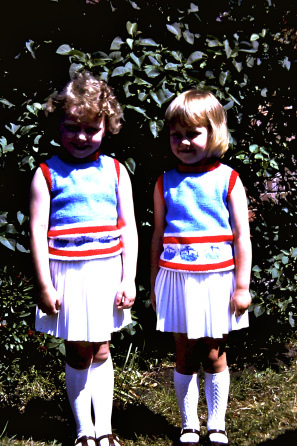 The tops were handknitted by our mum. They were red, white and blue, obv., and had little crowns around the bottom. You can’t see them very well on the above photo. But you can on this’un.