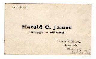 Harold C James was my dad. I assume it’s from the early 60s. He didn’t need a real business card. He worked in a printers (which, if you’re so inclined, you can read more about over on Girls Heart Books) and obviously made it himself, for a laugh. (And it did make me laugh.)