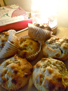 Joe came to help – "Mixin', Mama!" – and it was all pretty straightforward. In the oven for 25 minutes and they actually came out looking like muffins. Last time I tried to make muffins they were stodgy, incredibly heavy, and almost inedible. These were a bit dry and chewy, but actually pretty nice. Harry declared his "Delicious". Joe agreed that his was "Deeyicious" adding "Muffin nice, Mama!" I'm not surprised he was surprised.