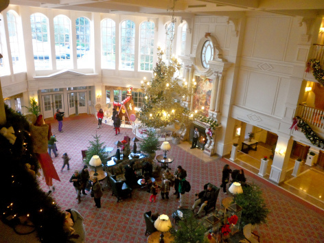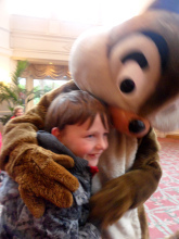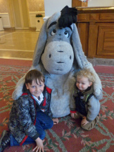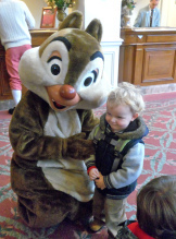 I'd read online that one of the best things about the hotel was the smell and it was the first thing I noticed as we walked in – closely followed by the tree and an enormous gingerbread house. While I was checking us in, Chip'n'Dale arrived and Joe got totally overexcited. It was lovely. We met Eeyore too.