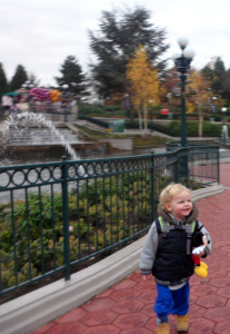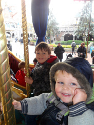 We went on the carousel and then the Dumbo ride, where we learned that Joe does not understand/accept the words "It's our turn next." The ride would finish, Joe would get excited, the ride would start again – without us – Joe would throw himself on the floor, sobbing. Yeesh.
