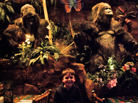 We went on a couple of Toy Story Land rides and then stayed for the Stars in Cars Parade, hoping that Phineas & Ferb might turn up (they didn't) and then we went to the Rainforest Cafe for lunch. Joe slept through most of it, but thankfully woke up in time to see some of the animals.