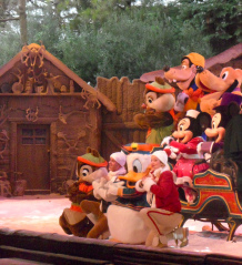 From there we went to watch a show – Mickey's Winter Wonderland – and it was fabulous. It's such an odd thing seeing Disney characters. Even though I'm 40 and I know they're just people in costumes, I still get quite excited to see them. Not as excited as the grown woman sitting in front who waved like mad every time one of them looked in her direction though…