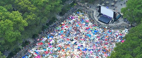 Bryant Park was already fairly busy by the time Jessie and Emma arrived. People had laid out picnic blankets or set out folding chairs. Some people had umbrellas up, to shelter them from the sun. The whole place was buzzing.