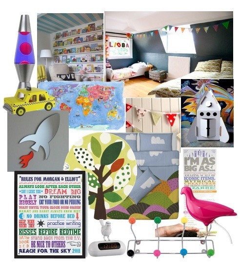 Remember Harry the writer? Well now he's added interior design to his skills. At the moment, the boys each have their own room, but they're both basically box rooms. The plan is to knock through (they were actually originally one room, so the dividing wall is just plasterboard) and then completely redo the resulting room. I'd saved a few images myself and then asked Harry what else he wanted. And… ta-da: