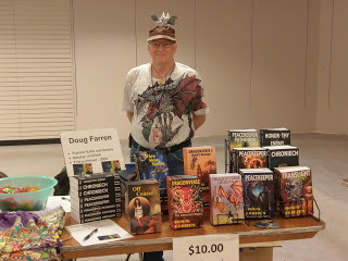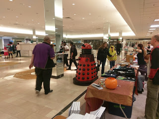 I sold a few books and met a few fans. I chatted with lots of good-natured people and got to see all sorts of interesting costumes walk by including a fully functional Dalek. Dragons were well represented. I head back there today. Keep reading to see some pictures of the event.