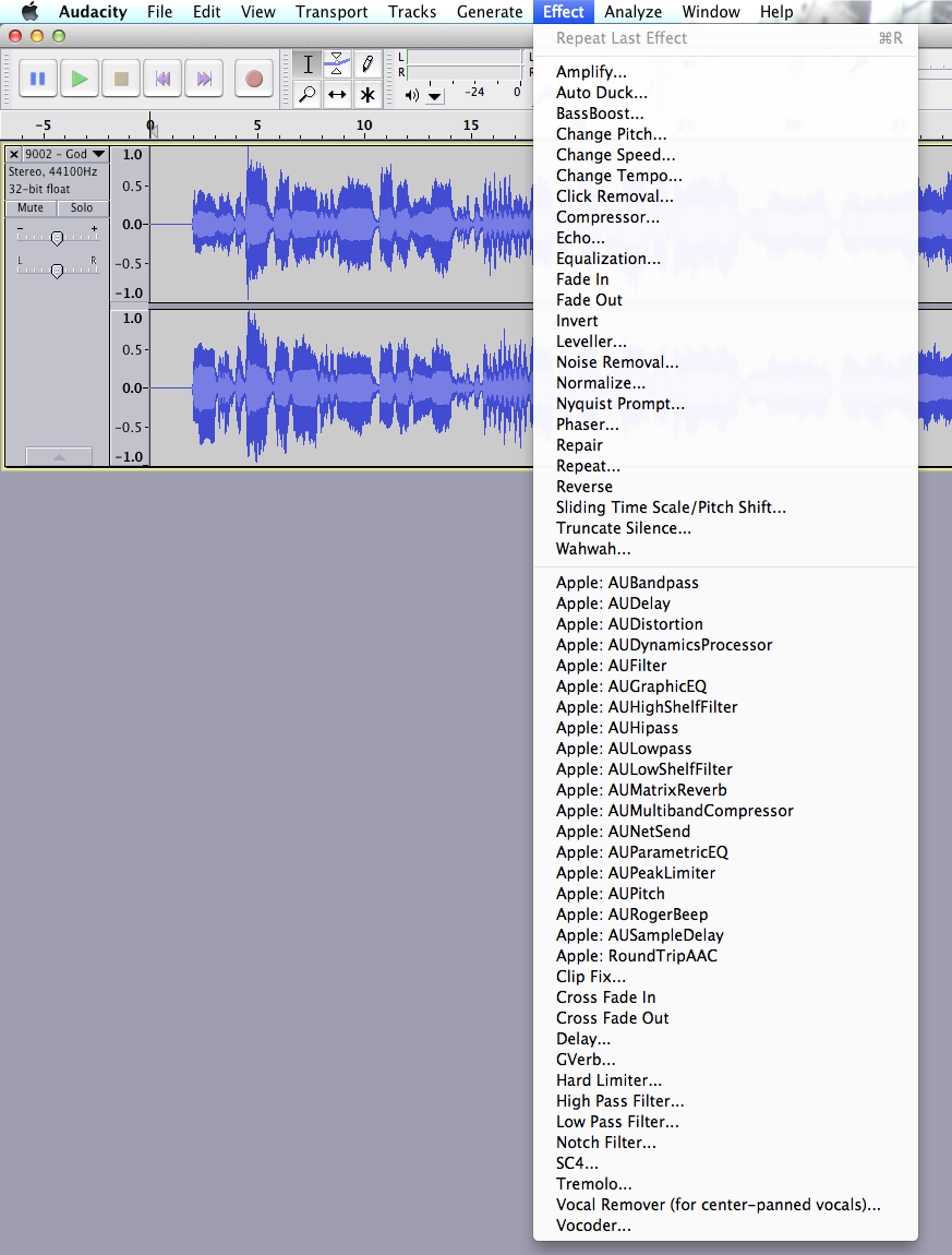 Take Audacity, the impressively free audio editing program I use. It can do all sorts of exciting things. Just look at that huge menu of effects of which I use... one. The program comes in hugely useful when I edit the tracks recorded for my company's increasingly vast emporium of organ pieces and hymn accompaniments, but my routine is always the same. Read in a track, make sure the lead in and out are consistent times, wipe any audio before the playing, fade out the audio at the end. And save. Touching a tiny part of the application's capabilities.