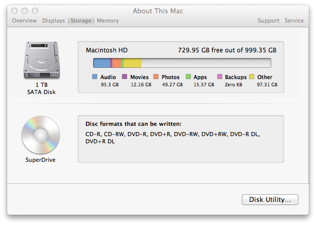 I tell you this, not so you can snigger at granddad, but to emphasise how things have moved on. In the early 1990s there was a huge business in software that automatically compressed files on your hard disk so you didn't run out of space. It slowed the computer down, but the introduction of music and photos was jamming up disk space terribly. But then something changed. Disks got really big. For my last few computers I've had more disk space that I knew what to do with. Let's take a look at what my computer has on offer and what I've used: