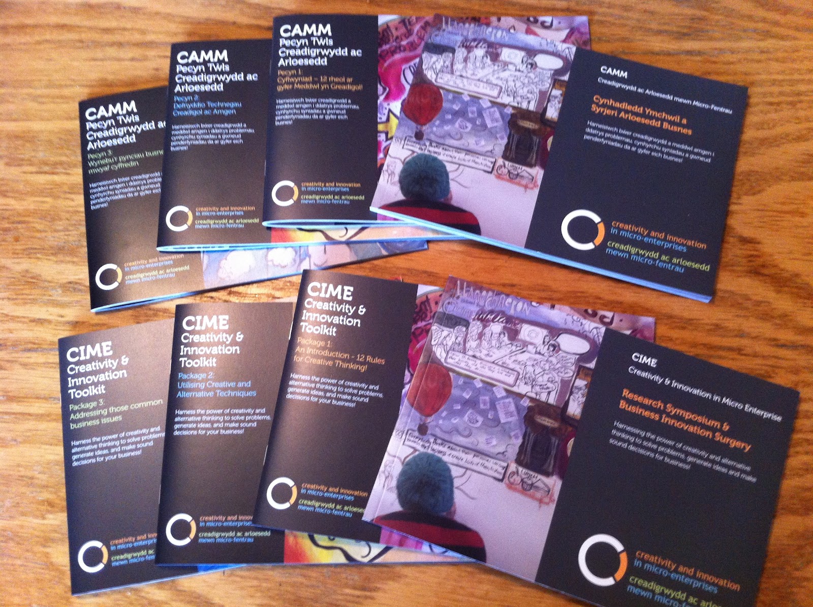 Eight booklets? No, just four, twice.I'm not Welsh, but the title of this post refers to a reflection that to do business in Wales seems to carry a painful overhead.Over the last couple of years I've been working with an excellent project called CIME which has been bringing the sort of business creativity support than can usually only be afforded by big companies to micro-businesses in the south west corner of Wales.