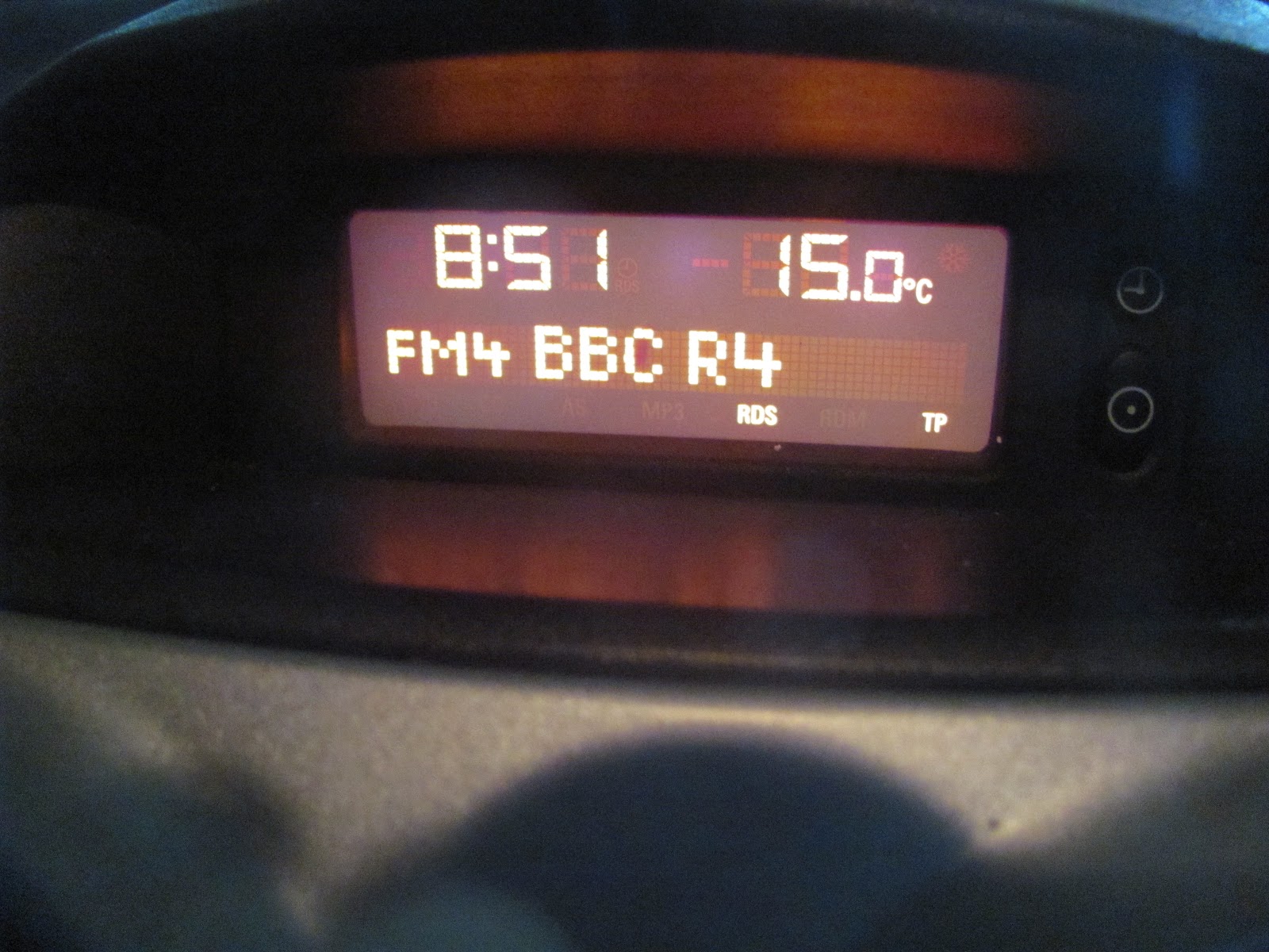 Boring British RDS displayThe latest was something simple but impressive. When we cross the channel we tend to press the button on the radio that finds a selection of stations, to get some authentic French sounds. And many of those French radio stations were doing something very clever.