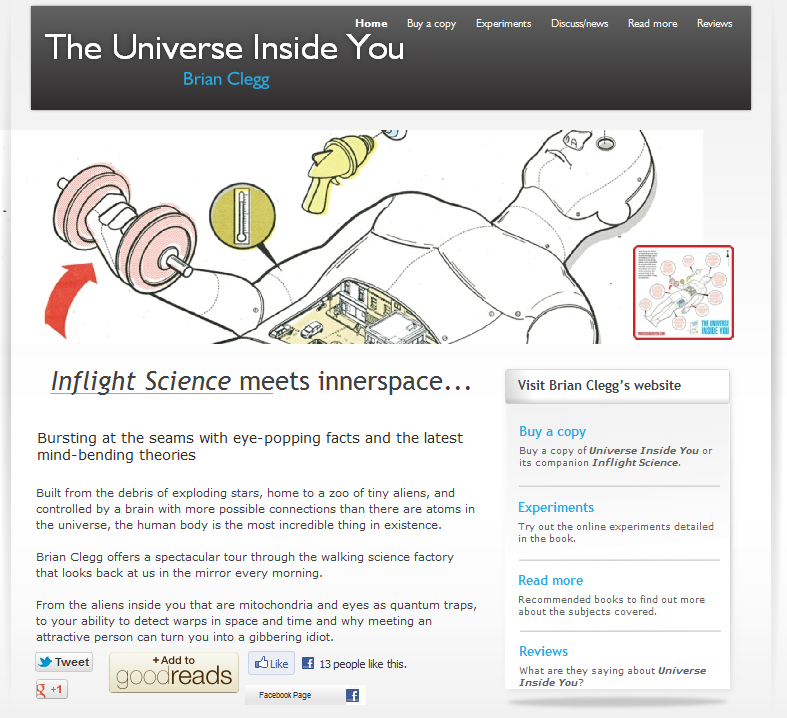 The outcome was www.universeinsideyou.com - I originally intended this purely as an adjunct to the book, but I've showed it to a sample of people who assure me it is quite interesting in its own right, so on their recommendation it's worth taking a look even if you don't have the book, whether you want to see someone walk on custard, experiment with optical and audio illusions, hear a piece of music that has travelled at four times the speed of sound, or interact with a piece of software that pretends to be a human being. Take a look!