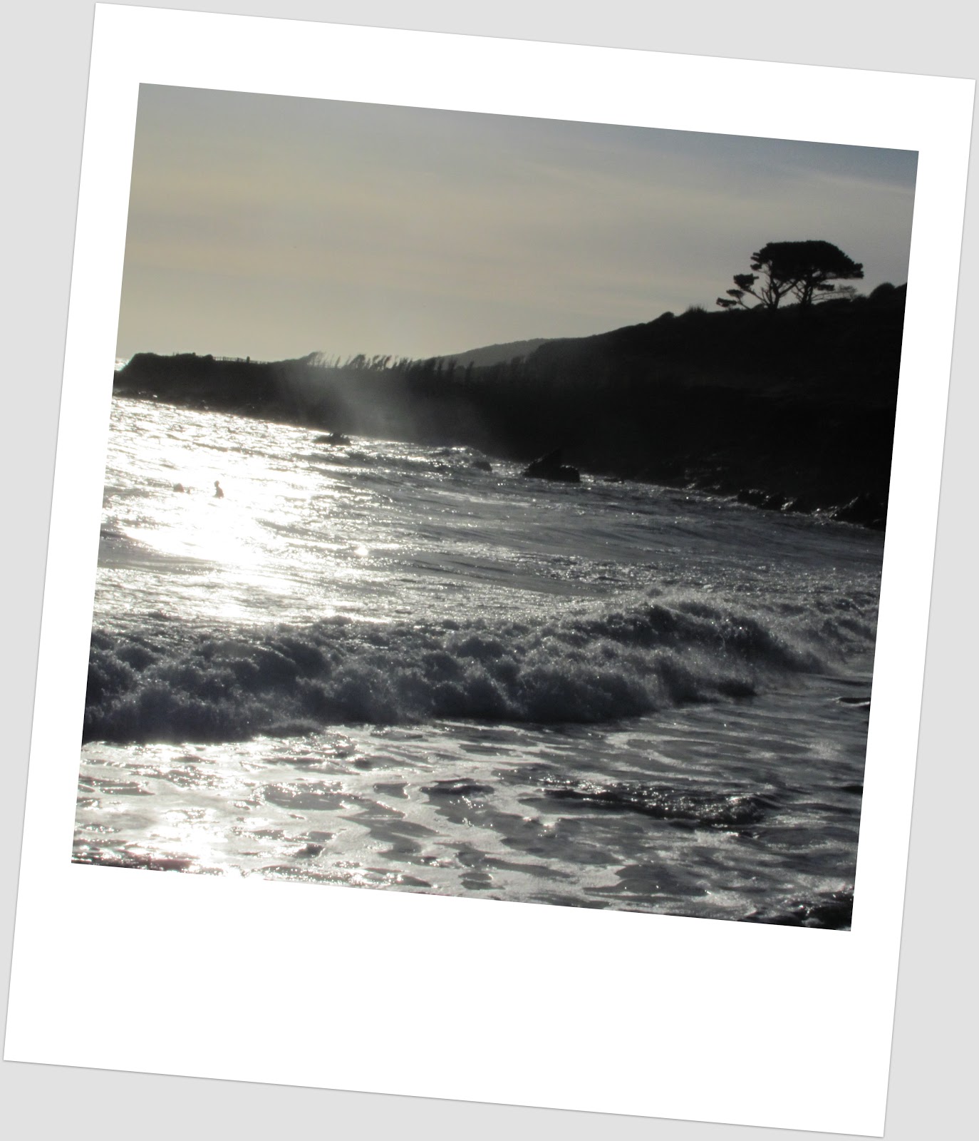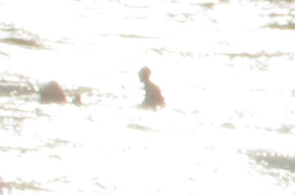 In my picture (cunningly pretending to be a Polaroid thanks to Picasa) you see a vertical streak of sunlight on the water to the left of the scene. The question is, is there a person in the water, or is that little blob about halfway up the whole image just a rock or an effect of the light? To an LNMologist that might be plenty to report a sighting of the beastie. But what is really there?