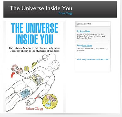 Small fanfare of trumpets. I'd like to announce the arrival of a new website, www.universeinsideyou.com - like most babies, it doesn't do much at the moment. In fact it's just a placeholder really. It may gurgle occasionally, but no nappies are involved.The website is for the followup to Inflight Science . The Universe Inside You uses your own body as a vehicle to explore everything from quantum theory to the workings of the brain.
