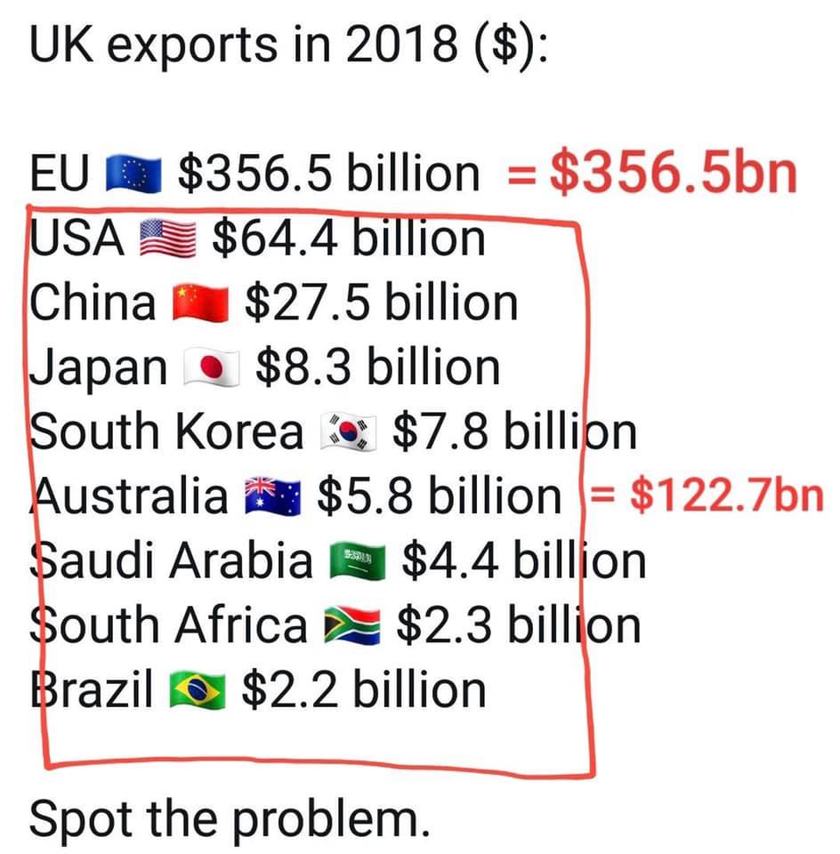 The first example is a deliberate attempt to mislead. The graphic at the top right has been circulated on Facebook. The idea is the this demonstrates the problem with Brexit by showing how important the EU is to us an export market. It doesn't matter if you agree or disagree with Brexit, the issue here is how the numbers are being used. I'd say there are three distortions here. The first is that it's perfectly possible to have Brexit and not to damage EU exports. Secondly, the numbers are bizarrely stated in US dollars - the only reason I can think for this is that it makes the EU amount seem bigger. Finally, there's the matter of the dog that didn't bark. Because around $350 billion of non-EU exports is missing. Bear in mind, I'm not saying the numbers are wrong - the EU is a hugely important market for the UK. But to omit around the same amount of non-EU exports as there are EU exports could only have been done to make the EU seem more important than it really is. That's bad, and clearly deliberate.