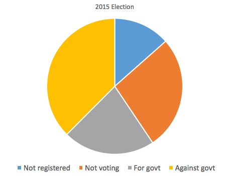 Terrible, isn't it? Clearly not democratic. Yet the grey section is the percentage of people voting for the government in the 2015 election.